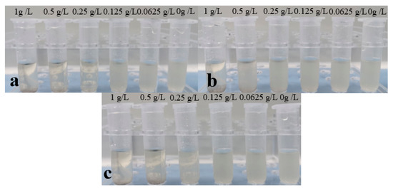 Minimum inhibitory concentration of E. coli (a), S. aureus (b) and P. aeruginosa (c).