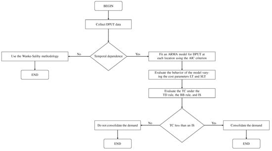 One of the few works on consolidation effects in inventories under time-dependent DPUTs is attributed to []. These authors found the optimal SS by assuming homogeneity in the DPUT variability and considering the temporal correlation. In [], optimal policies and approximations were proposed for inventories with temporally correlated demand in a similar setting, although not on the consolidation impact.