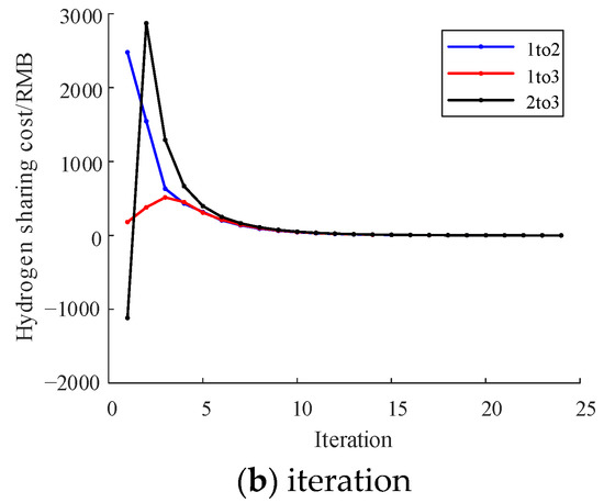 This study maximizes the alliance’s sharing benefits by minimizing the sharing price based on the optimal sharing amount. The sharing objects are electricity, oxygen, and hydrogen, whose convergence criteria are as follows: