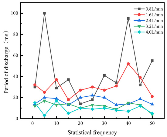 The influence of different air flow rates on the number of discharge periods (50 statistical frequencies).
