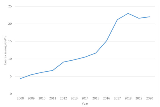 Energy savings generated by PROCEL from 2008 to 2020. Source: adapted from [55].