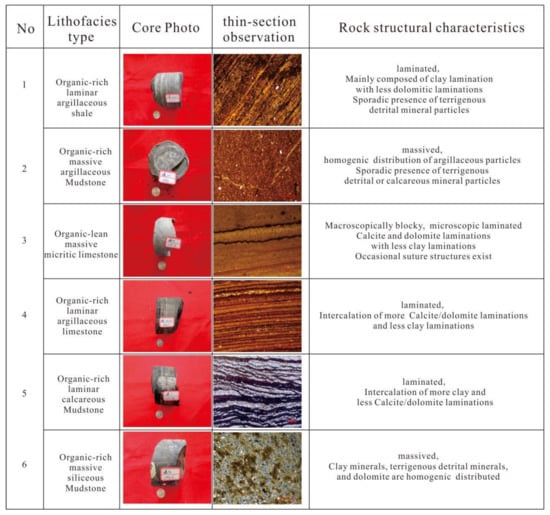 - Liu, Q.; Zeng, X.; Wang, X. Lithofacies of mudstone and shale deposits of the Es3z-Es4s Formation in Dongying Sag and their depositional environment. Mar. Geol. Quat. Geol. 2017, 37, 147–156. [Google Scholar]