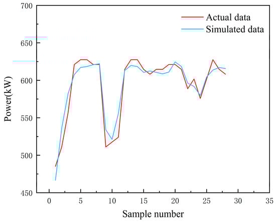 To verify the accuracy of the proposed air conditioning system simulation environment, As shown in Figure 5, this research compared the simulated data obtained from our simulation environment with the actual data used in the cooling source system portion of reference []. The results show that the power difference between the simulated data and the actual data was within ±7%, indicating that the simulation data can be used for the simulation and research of central air conditioning cooling source systems.