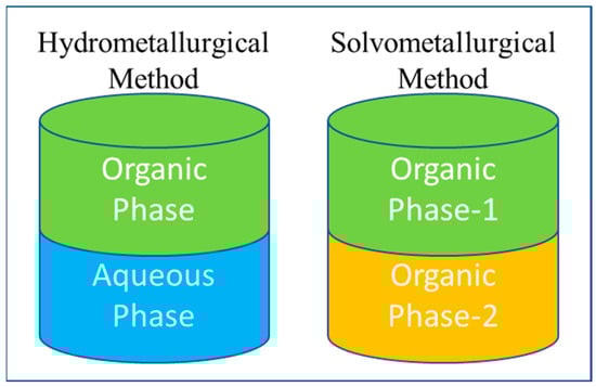 Schematic of solvent extraction in Hydrometallurgy and Solvometallurgy routes image is reprinted with permission from (Binnemans and Jones 2017 [56]), Copyright © 2017, The Author(s).