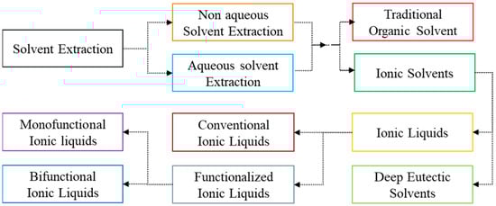 Schematic explaining the classification of solvents for the solvent extraction process.