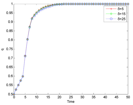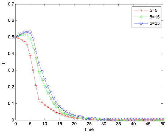 The fines imposed by the government are 5, 15, and 25, respectively, and the simulation results are shown in Figure 2, Figure 3, Figure 4 and Figure 5.