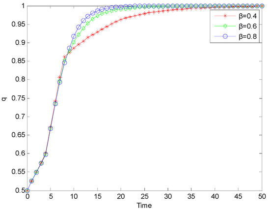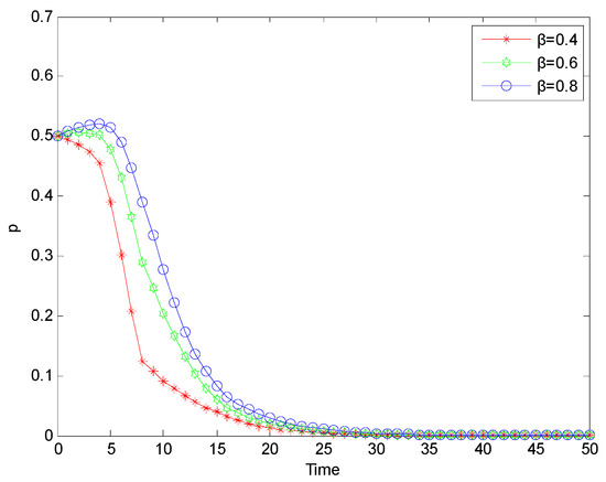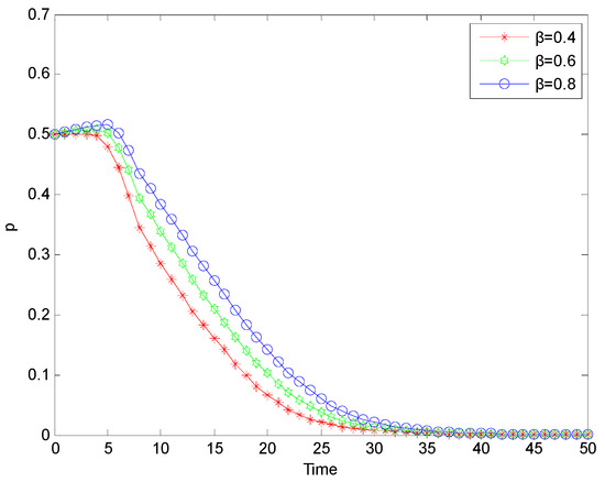 The probabilities are 0.4, 0.6, and 0.8, respectively, and the simulation results are shown in Figure 6, Figure 7, Figure 8 and Figure 9.