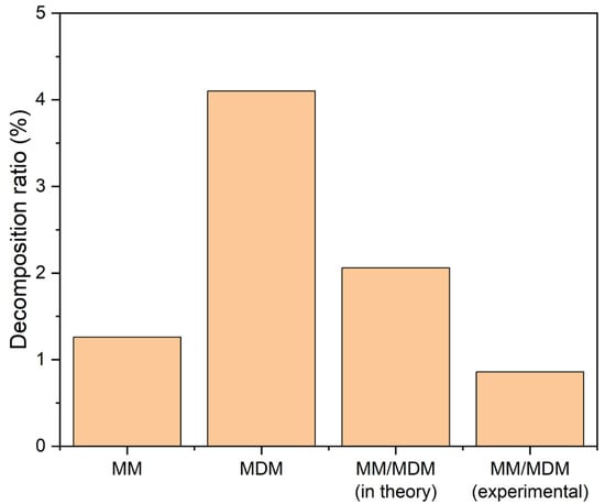 Decomposition ratios of MM, MDM, and mixtures at 280 °C.