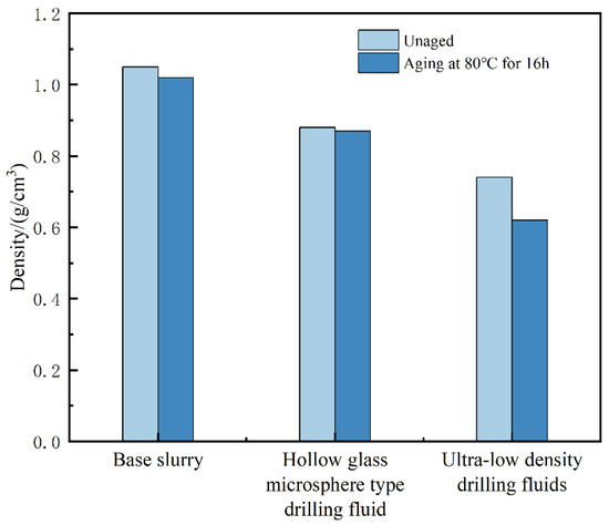 Comparing the density changes of the three drilling fluids before and after aging, the experimental results are shown in Figure 7.
