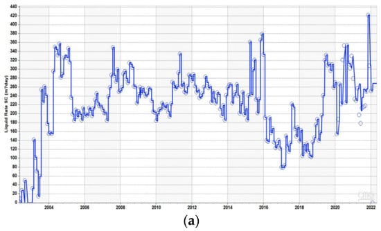 The liquid and oil velocity data of the S91 unit are shown in Figure 3. The daily data of the liquid and oil production of the simulation results were consistent with the actual production data. Similarly, the responding accumulated production data of the produced liquid and oil were also consistent with the actual well production. The highest well-fitting rate was 90%. Based on the geological data and numerical simulation model results following fitting adjustment, the characteristics and status of the S91 unit can be used to analyze the connectivity relationships of the reservoirs and the adjustment solutions.