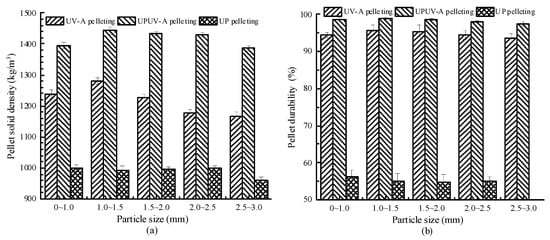 The pellet solid density and durability of comparative experiments: (a) pellet solid density; (b) pellet durability.