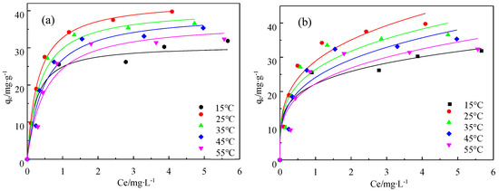 | Temperature/°C | Langmuir Model | Freundlich Model | ||||