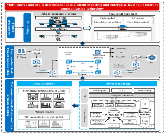 Multi-source and multi-dimensional data metadata modeling and enterprise-level fault-tolerant communication technology. In view of the difficulties in cross-platform and cross-level fault-tolerant communication between China and SA, especially the serious default of data in SA (those that have not worked with SA companies before, but have contacts with Chinese companies), research on multi-source and multi-dimensional data metadata modeling at the enterprise and industrial levels was conducted in China. The aim was to store the structured and modelized dataset of the complete information about Chinese manufacturers in the Chinese cloud. With the assistance of the public networks of the two countries, especially the complete 5G network in China, an enterprise-level fault-tolerant communication platform was constructed. The completion of defaulted data based on edge computing and information fitting can be achieved. This platform can be used to ensure data consistency between the two countries under different technical conditions, cultural contexts, and operation habits. The details can be observed in Figure 2.