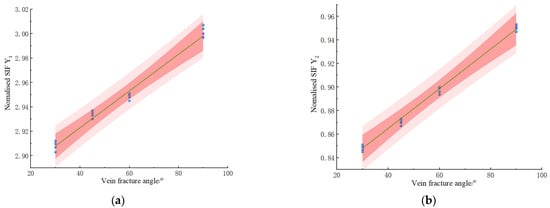 Y1 and Y2 are obtained at different vein fracture angles. (a) Y1 range with vein fracture angle; (b) Y2 range with vein fracture angle.