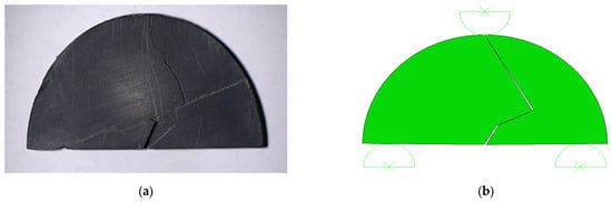 Figure 6a illustrates the mesh configuration of a homogeneous SCB specimen, whereas Figure 6b demonstrates the mesh of the SCB specimen incorporating a vein fracture. The J-integral method was employed to directly extract the stress intensity factor.