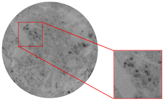 A higher-resolution image was obtained by microscopic electron microscopy scanning of core No. 2. The high-resolution images were trained. A 500 × 500 slice of CT scan of core No. 2 was selected and the original image was super-resolved, as shown in Figure 6.