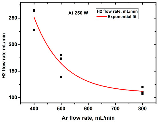 Figure 2 shows the variation in H2 yield as a function of the volumetric rate of Ar supply to the discharge. The yield decreases with the increasing Ar feed rate. This may be due to several reasons.
