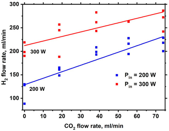 Figure 20 shows the change in H2 yield when the volumetric rate of CO2 supply to the discharge is changed. The argon feed volume rate was kept constant and equal to 600 mL/min.