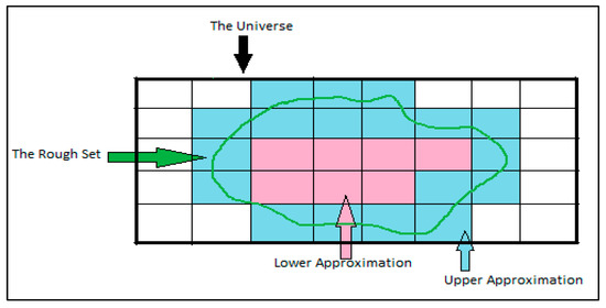The difference between the upper and lower approximation is named boundary region, expressed in Equation (3).