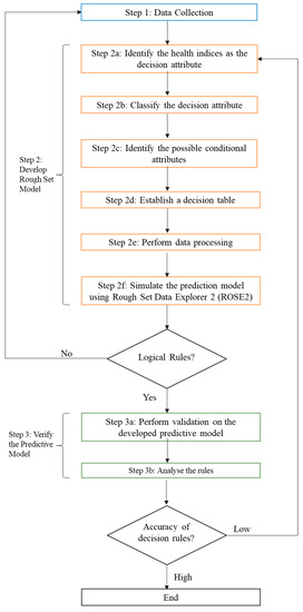 This section explains the steps to identify the underlying structure and develop predictive models for health performance. The main steps include data collection (Step 1), developing a rough set model (Step 2), and verifying the prediction model (Step 3). The proposed methodology is illustrated in Figure 2.