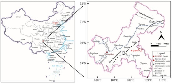 Location and geological structure of S-Q well area. The S-Q area is located in the southeast of Chongqing in China, as shown in the red box.