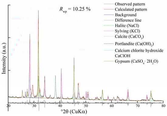 | Halite | Sylving | Calcium Chloride Hydroxide | Portlandite | Calcite | Gypsum | Rwp/% | Rexp/% | |