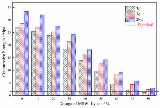 3.3. Effect of MSWI Fly Ash Proportions on Compressive Strength