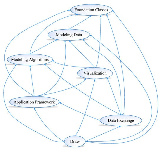 After completing the window interface design of the 3D platform, users are able to conveniently develop their own 3D visualization functions that meet their requirements by utilizing the encapsulation libraries included in OpenSceneGraph []. As an open-source display engine, OpenSceneGraph has a wide range of encapsulation libraries, mainly divided into the following five categories.