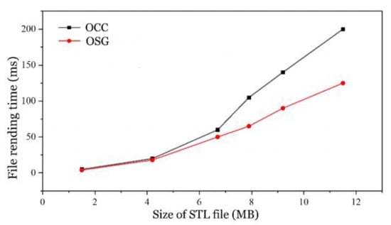 As shown in Figure 5, when the size of the STL file is small, there is little difference in rendering time between the two display engines. However, as the size of the STL file increases, the efficiency of rendering with OSG is significantly higher than that of OpenGL. Therefore, from the perspective of rendering efficiency, OSG is superior to OpenGL. Moreover, as shown in Figure 6, the comparison images of OSG and OpenGL opening the same STL file (Impeller.STL) clearly reveal that OSG renders smoother, without any surface fragmentation, compared to OpenGL. Therefore, this platform uses OSG display engine to realize all the functions of 3D model rendering and display.