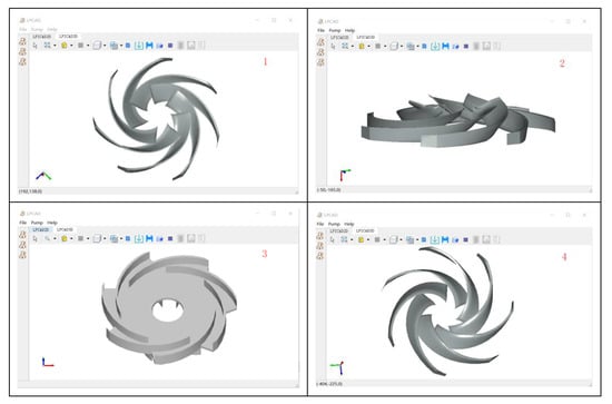 CAD technology has been widely applied in various design fields and has become an important tool in the engineering industry, including the pump industry. Commonly used CAD software for pumps includes CFturbo, BladeGen, and TURBODesign. CFturbo is a product of CFturbo GmbH in Germany []. This software can design various types of rotating machinery, such as pumps, fans, compressors, etc. The design process is convenient and intuitive. Designers input the design parameters of the rotating machinery, such as flow rate, head, speed, etc., and CFturbo automatically calculates other key parameters, providing great convenience to designers. CFturbo also provides many interfaces that can be connected to most CAD (Unigraphics NX and SolidWorks) and CAE (ANSYS) software on the market, facilitating model modification and simulation analysis []. CFX BladeGen consists of two modules: BladeGen and BladeGenPlus, which are primarily used for blade design of rotating machinery. The BladeGen module is used for blade design, while the BladeGenPlus module performs subsequent grid generation and CFD calculations. The combination of these two modules allows for predicting the performance of the blades []. TURBODesign is a blade design software for turbomachinery developed by the Advanced Design Technology (ADT) team. This software is suitable for various types of turbomachinery blades, including radial, mixed-flow, axial-flow, rotating and stationary, compressible and incompressible blades []. The distinguishing feature of this software is that it is a three-dimensional design software based on inverse design methods. Many researchers in inverse design optimization have used this software, indicating that it has comprehensive and convenient functionality in inverse design [].