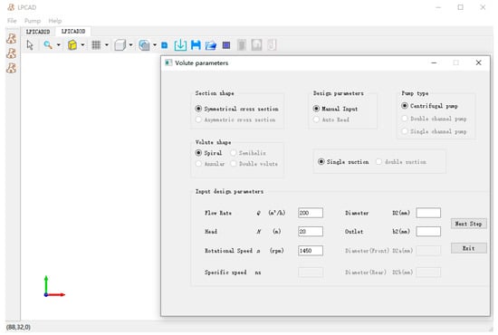 The aforementioned software provides powerful three-dimensional modeling and design capabilities that can be applied to the three-dimensional modeling of pumps. However, they are all commercial software which requires expensive annual licensing fees. Additionally, generic CAD software provides support for graphical element drawing across various industries, which limits its flexibility []. Since the 2000s, Liu et al. from Jiangsu University [] developed the PCAD hydraulic design software based on the AutoCAD platform using Object ARX development tools. This software features accurate design and high efficiency, and has been widely used in the pump industry in China. Liu et al. [] developed the PCAD-3D pump three-dimensional modeling software based on the Pro/E platform using the Pro/TOOLKIT, establishing data communication between PCAD-3D and PCAD, thus achieving three-dimensional parametric modeling of pumps. However, these software solutions still rely on commercial CAD software for normal operation, which undoubtedly increases security risks. Therefore, it is necessary to develop a lightweight pump three-dimensional CAD graphics support platform with professional characteristics and independent intellectual property rights to ensure the flexibility and security of the software.