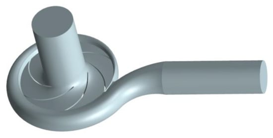 Based on the design parameters, the impeller and volute were designed on the 3D platform. After completion, the inlet and outlet extension sections were drawn based on the input and output data, and the pump assembly was carried out. The assembled pump is shown in Figure 22. The computational domain was partitioned into tetrahedral meshes using ANSYS ICEM CFD, with additional grid refinement added to the volute tongue, impeller rounding, and interface regions to ensure quality. The overall mesh quality was maintained at or above 0.30.