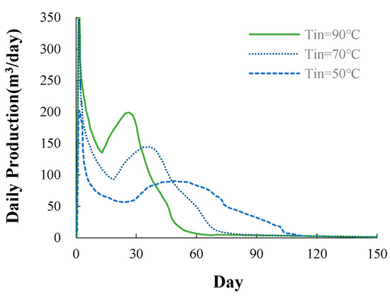 Daily production for different heat-injection temperatures.