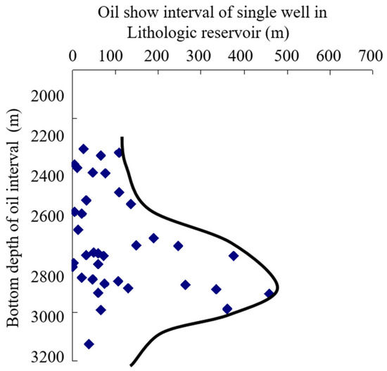 Relationship between oil shows the interval and depth in the lithologic reservoir in the Nantun Formation of Tanan sag.