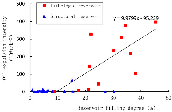 Relationship between the trap filling degree and hydrocarbon expulsion intensity in Tanan sag.