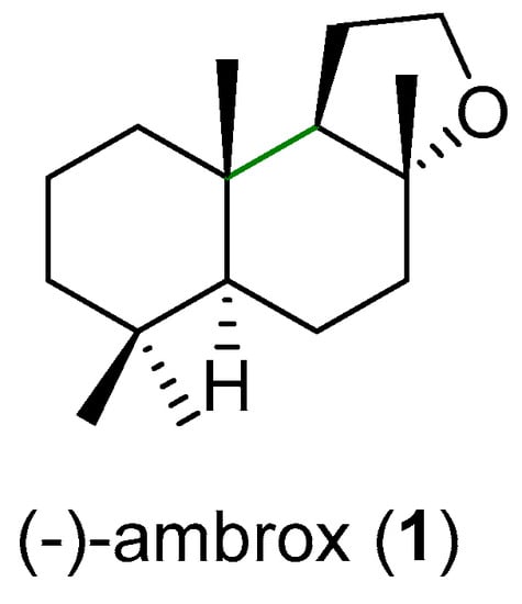 - Yang, S.; Tian, H.; Sun, B.; Liu, Y.; Hao, Y.; Lv, Y. One-pot synthesis of (-)-Ambrox. Sci. Rep. 2016, 6, 32650. [Google Scholar] [CrossRef] [PubMed]