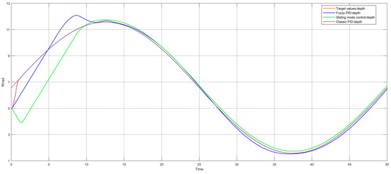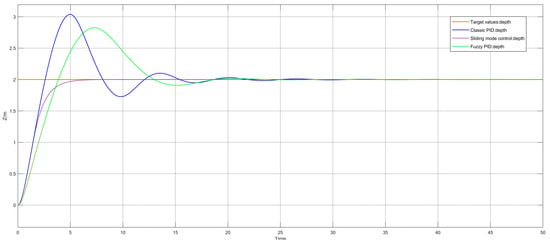 3]. The underwater vehicle is a typical nonlinear system, and its mathematical model contains some nonlinear factors, such as fluid resistance and wave interference, which cannot be described by a simple linear model. At the same time, the movements of the various degrees of freedom of the underwater vehicle are coupled with each other, which greatly increases the difficulty of controlling of the underwater vehicle. For the underwater robot system, researchers have tried a variety of control methods and achieved different degrees of control effect, and the main control methods include PID control, fuzzy control, sliding mode control, and neural network control, among others.
