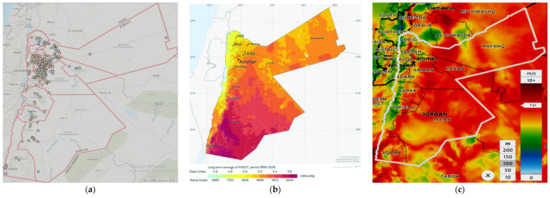 - Solar Resource Maps of Jordan. Available online: https://solargis.com/maps-and-gis-data/download/jordan?fbclid=IwAR0_SVrEoHcp2a6KO-1qlVjwB-7M3TMH16VgcPqM12p-kHRgRj3vMrDDM_A (accessed on 15 March 2023).