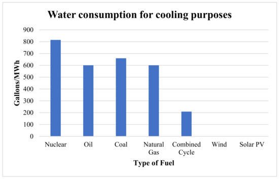 Using cooling water in thermal power plants has led to difficulties in managing water resources and determining how to distribute water fairly in various areas recently [58]. Approximately half of the water used in the United States and Western Europe is for energy production, mainly for cooling. In China, the majority of water withdrawals, at 84%, are for thermoelectric power generation, mostly used in coal-fired power plants. Worldwide, around 10% of water withdrawals are used for energy production. Along with cooling, some water is also used in fuel extraction, processing, and transportation for electricity generation [59]. While there is no need for water in renewable energy projects compared with the required amounts in thermal power plants. A massive amount of water is needed in power plants that use natural gas, oil, coal, and other sources. Figure 10 clarifies the average amount of water required by each energy source [60]. A study conducted by [33] stated that Water resources in Jordan can be classified into two main categories: conventional and unconventional. Conventional water sources encompass groundwater, rivers, and streams (including base flow and flood flow), while unconventional resources include treated wastewater, brackish water, and desalinated water. The primary source of water in Jordan is highly variable seasonal rainfall. However, substantial rainfall (exceeding 200 mm/year) is predominantly restricted to the highlands in the country’s northwestern region. Approximately 5% of the rainfall infiltrates the ground, replenishing the groundwater aquifers, while a slightly smaller portion transforms into direct flood flow. More than 90% of the annual rainfall is lost through evapotranspiration. Besides local water resources, the contribution from regional watercourses and transboundary groundwater flow significantly adds to the country’s renewable water resources.
