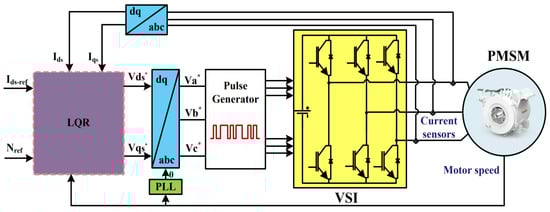 Block diagram of the adopted PMSM drive system using the LQR.