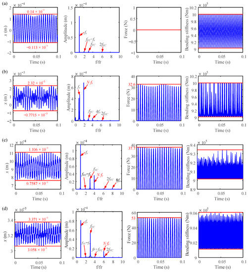 - Zhang, Y.; Xiang, L.; Hu, A.; Chen, K. Nonlinear dynamic response on multi-fault rod fastening rotor with variable parameters. Appl. Math. Model. 2023, 114, 147–161. [Google Scholar] [CrossRef]