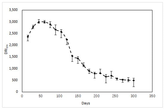 The change of waste DRIdm in the landfill over time.