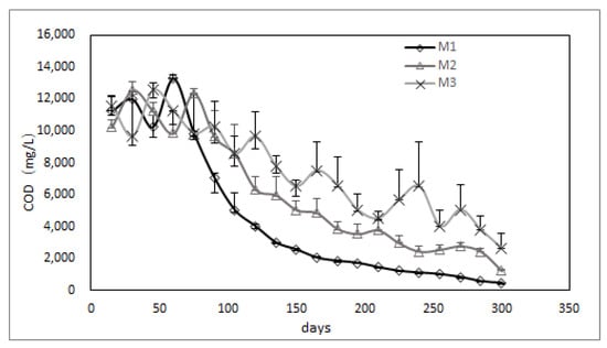 The variation of leachate in M1, M2, and M3 reactors after 300 days of aerobic remediation testing is shown in the Figure 5 and Figure 6 below: