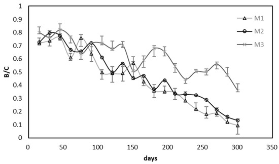 3.3.2. BOD5 to COD (B/C) Ratio