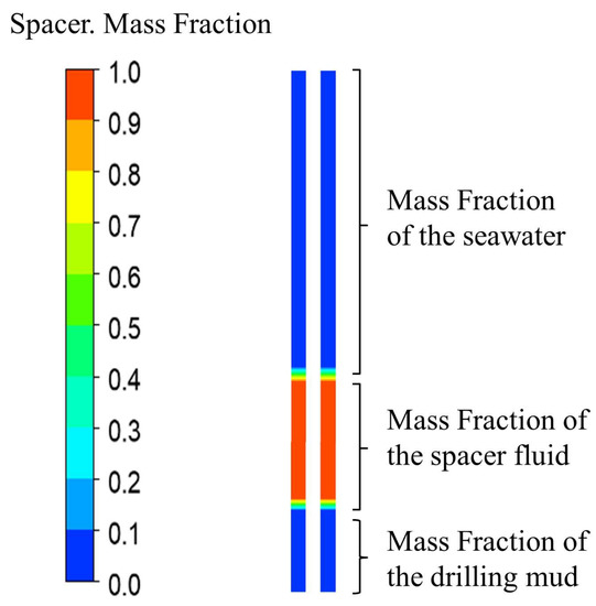 As shown in Figure 7, there are two stable interfaces between the seawater, spacer fluid, and drilling mud in the transient model under the initial conditions.