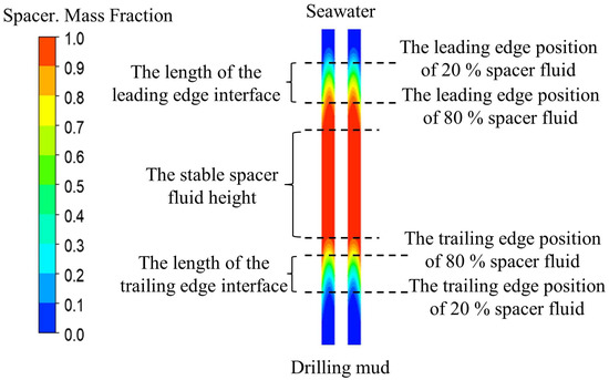 Setting of the stability evaluation indicators for the spacer fluid interface. The position of the 20% spacer fluid indicates the location where the mass fraction of the spacer fluid is 20% on the cross-section.
