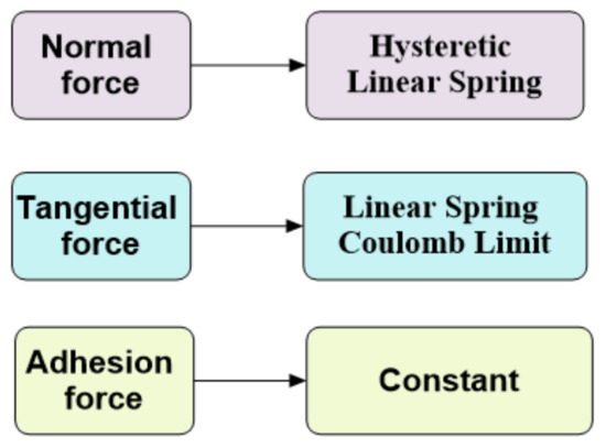 Figure 6 presents the models that have been adopted in the DEM analysis for the contact forces.