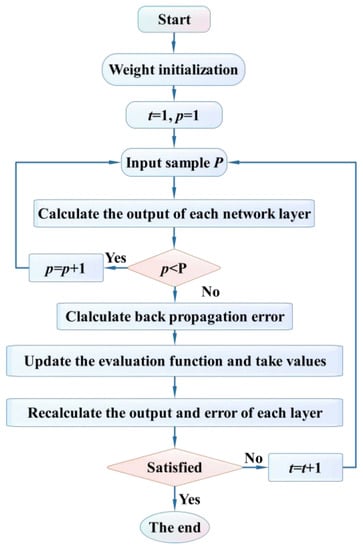 By adopting a new performance index function it is ensured that the network has smaller weights, while minimizing the training error. This effectively results in the automatic reduction of the network’s size, which in turn reduces the chances of overfitting. Overfitting occurs when the dimension of the network is considerably smaller than the magnitude of the training dataset. This is beneficial for enhancing the network’s generalization ability. The improved algorithm workflow is described in Figure 7.