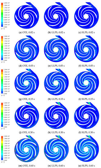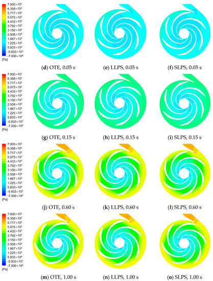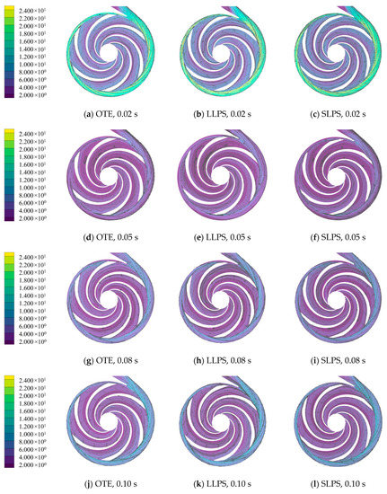 3.3. Analysis of Internal Flow Field of Centrifugal Pumps with Different Filing Blades during Startup