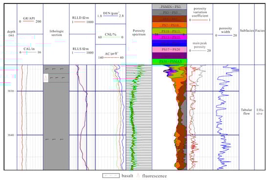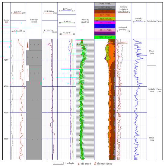 - Zuo, C.; Wang, Z.; Xiang, M.; Zhou, D.; Liu, Z. The radial pore heterogeneity of volcanic reservoir based on the porosity analysis of micro-electric imaging logging. Geophys. Prospect. Pet. 2016, 55, 449–454. [Google Scholar]